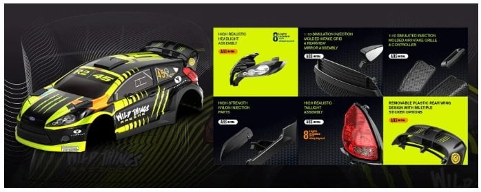 XTS-F10 Rally Car’ın gövdesi, darbelere dayanıklı ve uzun ömürlü olması için 1.2 mm kalınlığında PC malzemeden üretilmiştir. Önceden boyanmış desenler ve gerçek yarış arabalarını andıran detaylı bileşenlerle donatılarak, hem otantik bir görünüm sunar hem de performansı artırır.