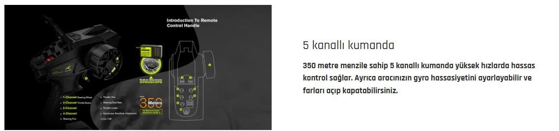 XTS-F10 Rally Car, daha kolay kullanım için jiroskop destekli 5 kanallı 350m menzilli vericiyle gelir. Bu sayede stabilite ve kontrol artar, sürüş deneyimi daha keyifli hale gelir.