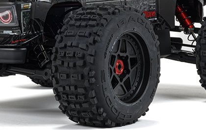 Dayanıklı göbeklere sahip çok kollu jantlar üzerindeki uzun ömürlü yeni Big Block dBoots® Back-Flip BB lastikler, her türlü arazide çekiş gücü sağlar ve EXB mat ve parlak efektli kamyon gövdesine agresif bir hava katar.