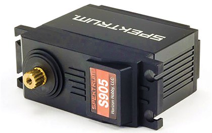 - Güçlü bir Spektrum™ S905 yüksek torklu, büyük ölçekli direksiyon servosu içerir (birlikte verilen adaptörle daha büyük 1/5 ölçekli servoları da kabul eder)