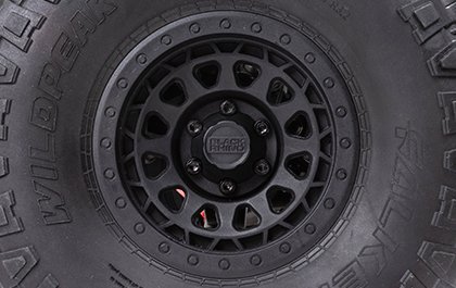 - Yüksek çekiş gücüne sahip, 7 inç uzunluğunda, resmi lisanslı Falken Wildpeak M/T lastikleri, resmi lisanslı Primm Black Rhino beadlock jantlara takılır