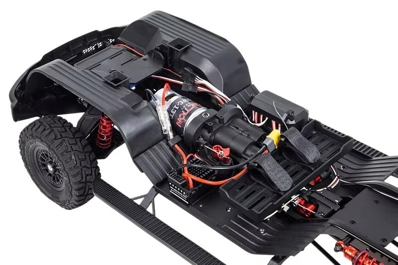Traction Hobby 1/8 ölçek RAM 1500, tam lisanslı gövdesi, güçlü brushless motor sistemi ve ileri seviye sürüş özellikleriyle hem crawler hem de trail kullanıcıları için üst düzey bir RC kamyon deneyimi sunar. Gerçekçi detayları ve fonksiyonel donanımlarıyla vitrinde etkileyici, arazide ise son derece yeteneklidir.