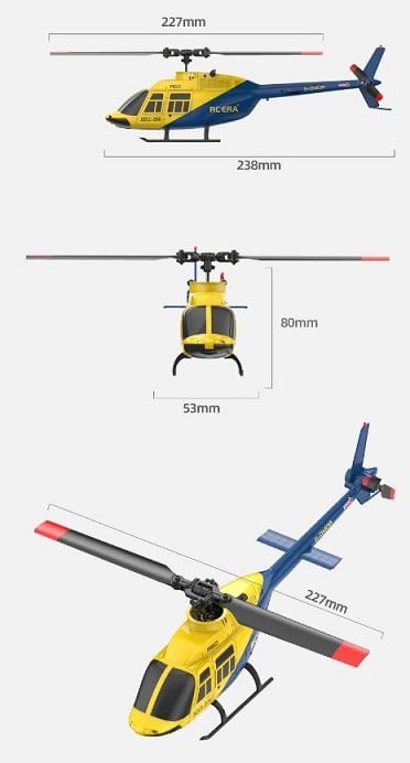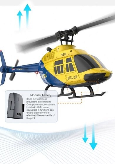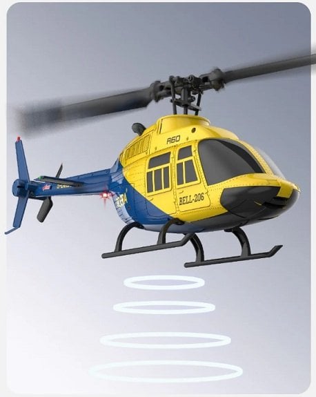 RC ERA A60 Mini Bell-206, kompakt boyutu, flybarless tasarımı, 6 eksen gyro stabilizasyonu ve barometrik irtifa koruma (Altitude Hold) özelliğiyle başlangıç seviyesi kullanıcılar ile hobi tutkunları için geliştirilmiş ultra stabil bir RC helikopter modelidir. Gerçek Bell-206 helikopterinden esinlenen ölçekli gövdesi, hassas uçuş karakteri ve dayanıklı yapısıyla hem uçuş hem de sergileme amaçlı mükemmel bir tercihtir.