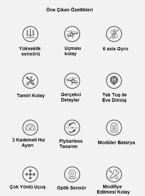 Helikopter tek bir yükseklikte sabit kalabilir ve otomatik hover yapabilir. Bu özellik özellikle yeni başlayanlar için dev bir avantajdır.