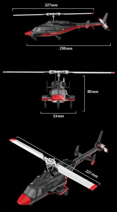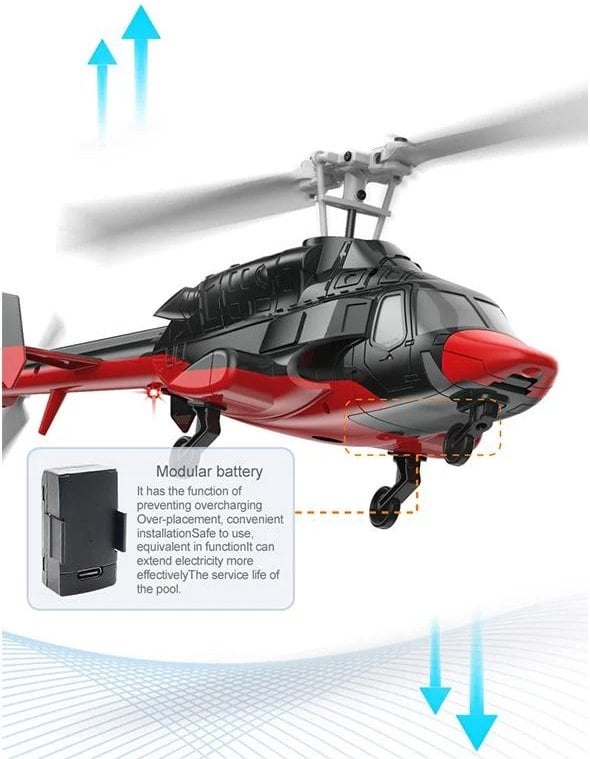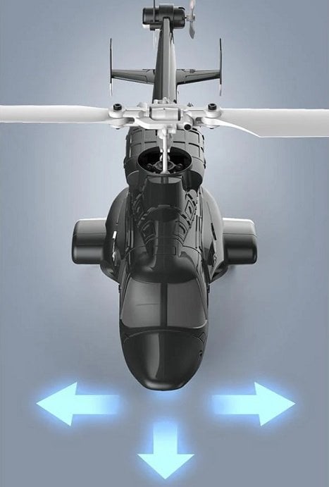 Aerodinamik optimize edilmiş tek rotor tasarımı ve iki dijital servolu 4 kanallı kontrol yapısı sayesinde, küçük boyutuna rağmen yüksek tepki hızı ve ultra stabil uçuş performansı sağlar. Hem iç mekânda hem de dış mekânda rahatlıkla kullanılabilecek bir mini Airwolf modelidir.