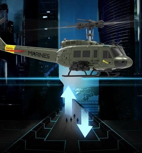 RC ERA C032 UH-1 Huey, askeri havacılık tarihinin en ikonik helikopterlerinden UH-1 Huey’nin yüksek detaylı ölçekli bir RC replikasıdır. Gerçekçiliği, performansı ve stabil uçuş karakteriyle hem koleksiyoncular hem de hobi meraklıları için mükemmel bir modeldir. 6 kanallı kontrol yapısı, brushless ana motoru, 6 eksen gyro stabilizasyonu ve gelişmiş 3D akrobasi yetenekleriyle üst seviye bir uçuş deneyimi sunar.