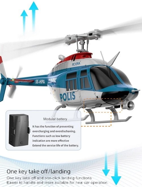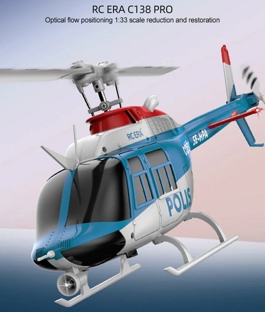 Gelişmiş teknolojisi ve kullanıcı dostu özellikleri ile RC ERA C138 Pro Bell 206, hem yeni başlayanlar hem de deneyimli pilotlar için ideal bir RC helikopter modelidir. Flybarless tasarımı ve 6 eksen gyro sistemi, uçuş sırasında yüksek stabilite ve kontrol sağlar. Akıllı konumlandırma sistemi, barometre ile otomatik irtifa koruma ve optik akış pozisyon kilitleme özellikleri sayesinde, kullanıcıların güvenli ve kolay bir uçuş deneyimi yaşamasını mümkün kılar.