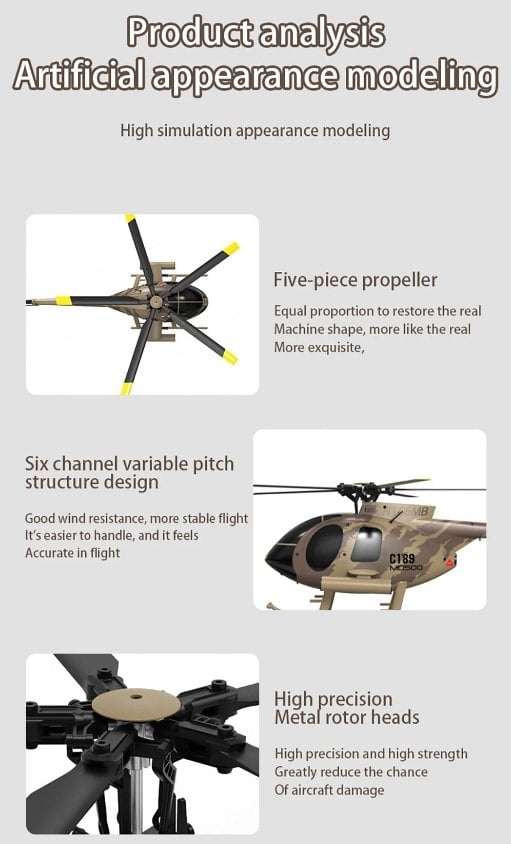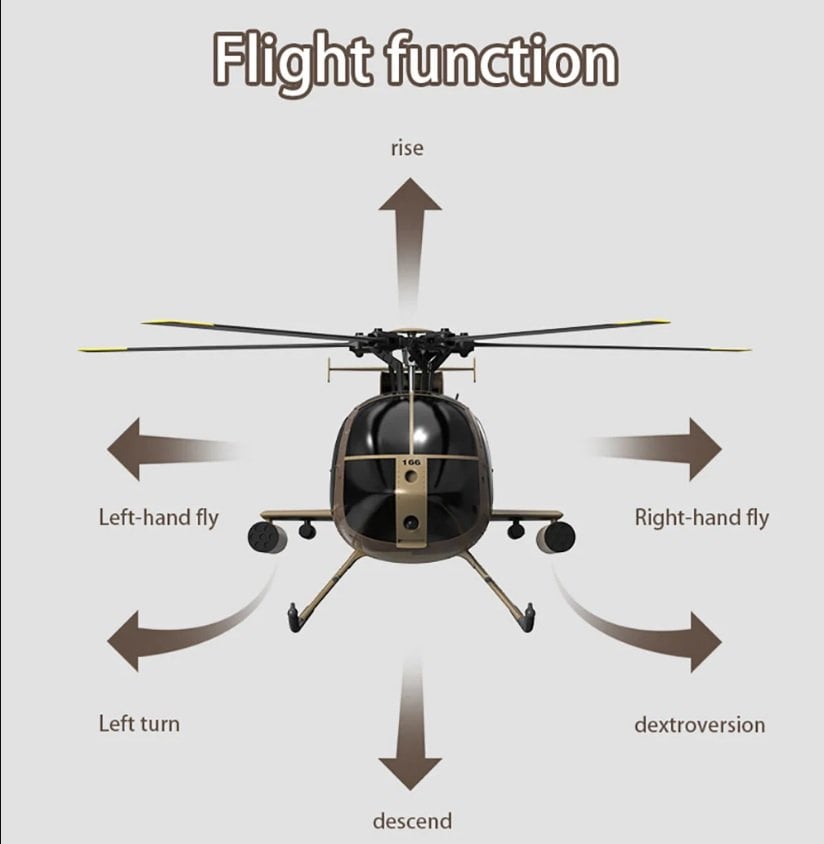 Profesyonel RC helikopterlerde bulunan 6CH yapısıyla daha hassas, daha hızlı ve daha gerçekçi uçuş hissi sunar.