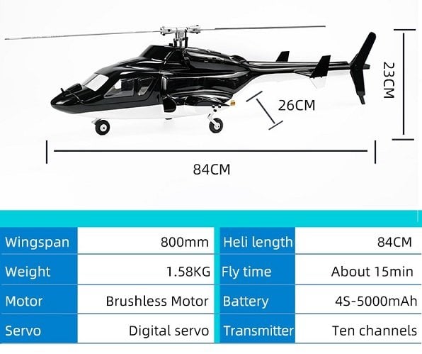 Anahtar yerleşimi ergonomiktir, işlevler net bir şekilde belirtilmiştir ve çift joystick merkez dönüş tasarımı sayesinde kumandayı bıraktığında helikopter otomatik olarak yavaşlar ve havada sabit kalır.