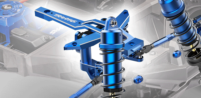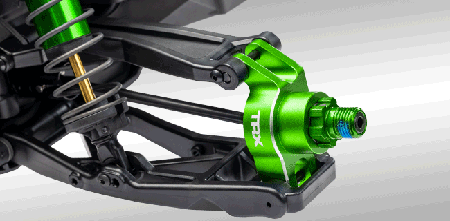 Parlak anodize kaplama, yüksek teknoloji görünümüne katkı sağlar ve lazerle işlenmiş Traxxas logoları ile orijinalliği vurgular.