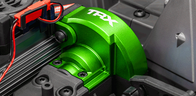 Alüminyum şanzıman kapağı, aracın gövde rengine uyumlu tasarımı ve lazerle işlenmiş Traxxas logosu ile hem şıklığı hem dayanıklılığı bir araya getirir.