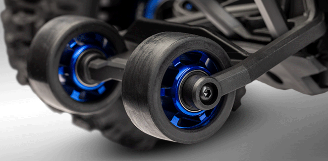 Alüminyum akslar ve kapalı rulman sistemleri ile donatılmış tekerlekler, yumuşak bileşenli dayanıklı lastikleri sayesinde Maxx’in brutal gücünü kontrollü şekilde yönlendirir