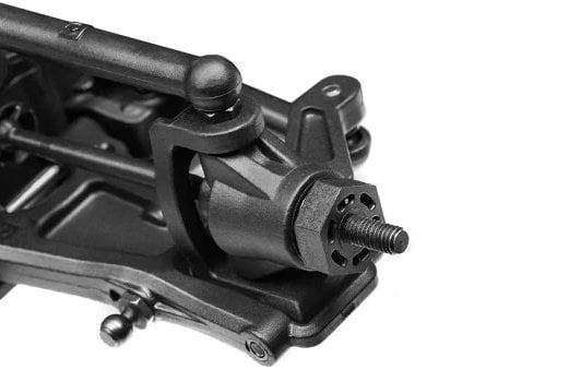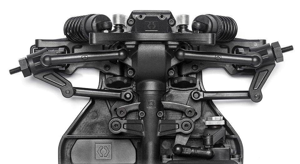 Sport 3 ön ucu güçlü C-hub tarzı süspansiyon kullanır En son RC tur otomobillerde görüldü, dikey bir top dadu ile Ön uç rulo merkezini değiştirmenizi sağlayan kamber montajı - Sport 3'in olmasını sağlayan kritik bir yarış ayarlaması Diğer spor seviyesindeki RC turne otomobillerinin bir adım üstünde. süspansiyon kolu Ayrıca kolay şok açısı için birden fazla şok montaj deliğine sahiptir Adaptasyon.