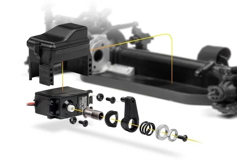 Sport 3, ayarlanabilir çok parçalı bir kamera tarzı servo içerir Servoyı çarpışma hasarından koruyan tasarruf. içinde Bir çarpışma veya çarpışma olayı, ön tekerlekler genellikle alır Darbenin büyük kısmı ve etkiyi doğrudan buna iletir. Direksiyon servo. servonun güçlü yay yüklü kamera hareketi Saver bu kuvveti emmek ve servoları korumak için tasarlanmıştır.