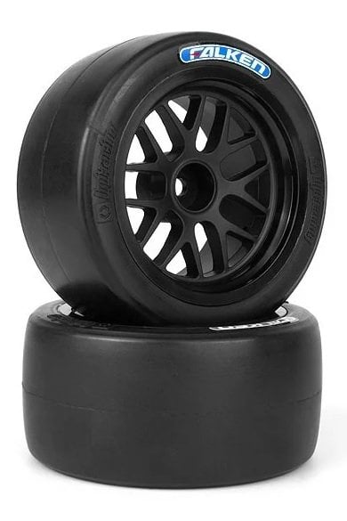 BBS örgü yarış tekerleğinin etrafına sarılmış yumuşak bileşik HPI Yarış replikası Falken Azenis kaygan yarış Lastikler. 31mm geniş ön lastikler ve ekstra geniş 35mm ekstra geniş Arka lastikler yolda maksimum yüksek kavrama sağlar Performans.