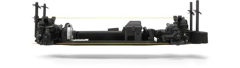 Ana chassis tek bir takviyeden oluşur kompozit plastik ve hemen aşağı doğru kalıplanmış aktarmat treni tüneli bulunur Orta, gerçek bir araba gibi. Herhangi bir plastiğin ötesinde bir adımdır. Günümüzde küvet chassis arabası mevcuttur.