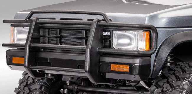 TRX-4 Pathfinder, sert ve gerçekçi bir arazi görünümü için entegre lensli siyah ön ızgara ve sağlam bir koruma barı (push bar) ile donatılmıştır. Aracın detaylı ön ve arka farları, daha fazla gerçekçilik isteyen kullanıcılar için opsiyonel olarak satılan Pro Scale Aydınlatma Kiti (ayrı satılır) ile tam uyumludur.
